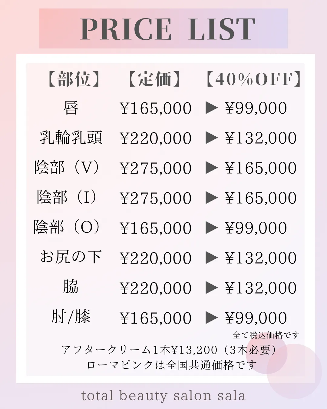 ※ローマピンクの価格は、本社で決められておりどこで受けても一律です。